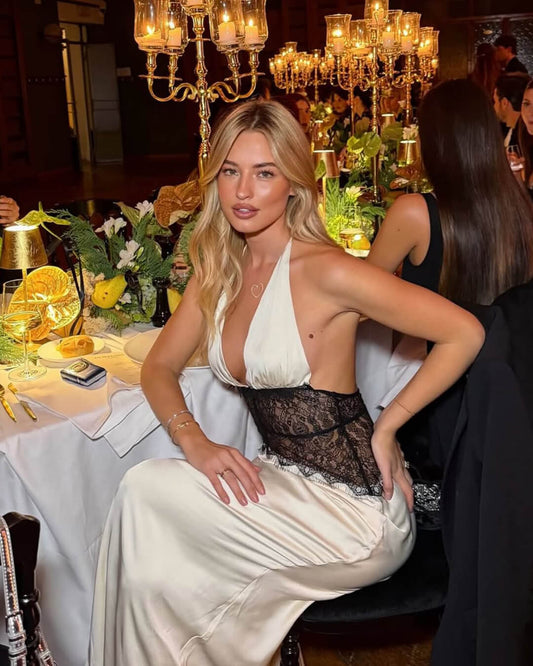 Danna Satin Lace Waist Backless Dress